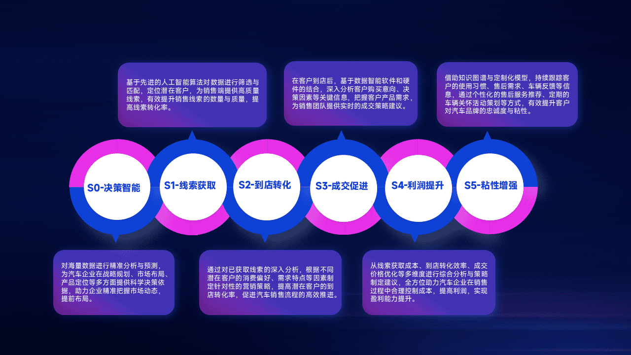 通过拓宽潜在客户来源、、、优化线索分配并提高到店转化率,,,,以增强销售效率。。。同时,,,,利用线索数据不断优化分析模型,,有效提升转化率,,,扩大营销影响力。。